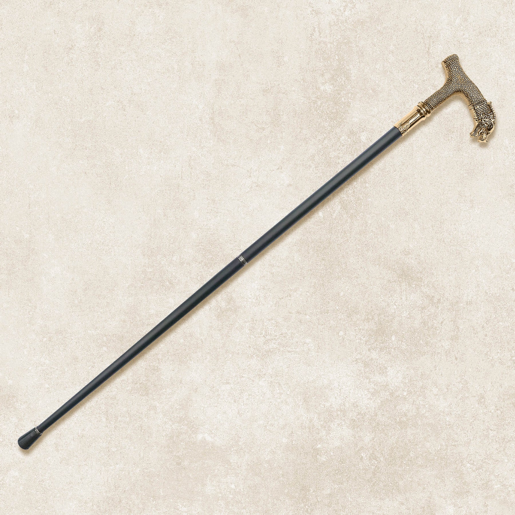 This walking cane channels the spirit of the dragon, with a strikingly detailed handle, sculpted to capture every curve and expression in bold relief. Crafted from galvanized iron, the solid 36” shaft offers both sturdy support and refined style, while the textured handle provides a comfortable and commanding grip. Finished with a durable rubber tip for added stability, this cane is not just an accessory – it is a bold statement of purpose for those who walk with pride and presence.