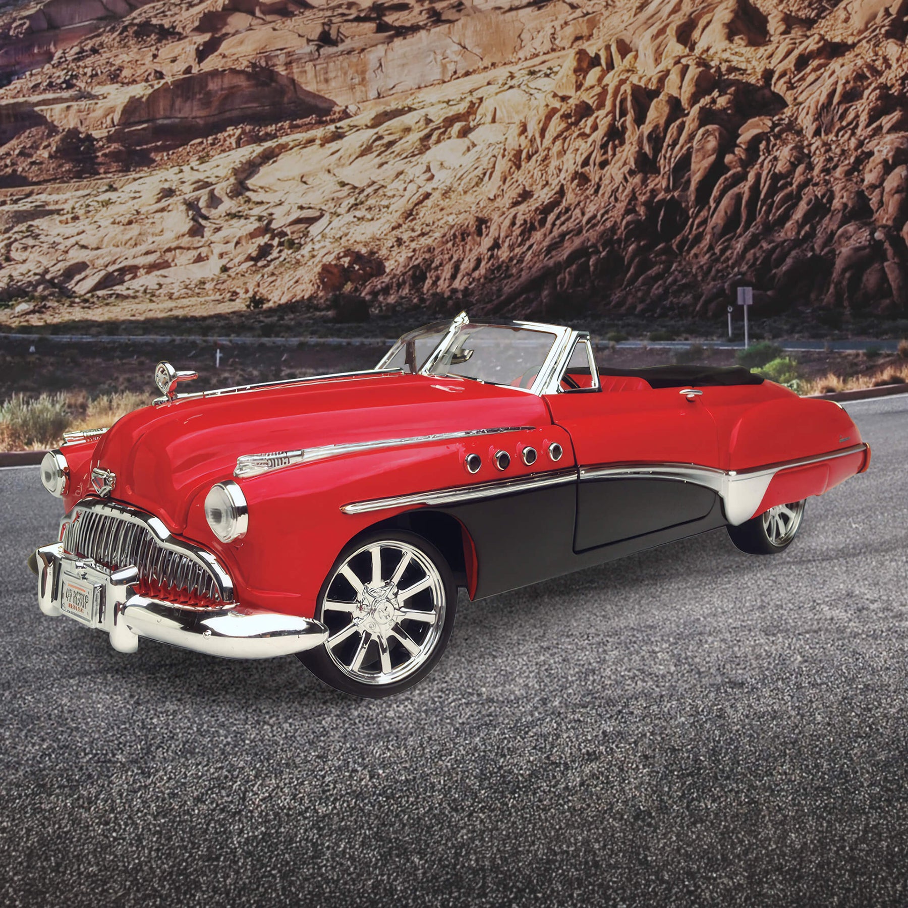 The Buick Roadmaster was built from 1936-1958 and then again from 1991-1996. The Roadmaster received its first post war re-styling in 1949. The length had been reduced but the weight slightly increased. The most significant changes were a curved windshield and a much larger two – piece. Ventiports were added to all 1949 Buicks and the idea of this was to recreate controls of an imaginary fighter plane. This 1:18 scale die-cast captures every detail.