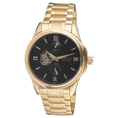 An automatic or self-winding watch is a mechanical watch in which the mainspring is wound automatically as a result of the natural motion of the wearer to provide energy to run the watch, making manual winding or changing of a battery unnecessary. Perfect for people who travel frequently or who do not wear their watch every day. Check out our extensive range of automatic watches in a wide range of styles including gold, steel and rose gold finishes. In a mechanical watch the watch's gears are turned by a spiral spring called a mainspring. In a manual watch energy is stored in the mainspring by turning a knob, the crown on the side of the watch, winding the mainspring. Then the energy from the mainspring powers the watch movement until it runs down, requiring the spring to be wound again. Self-winding mechanisms continue working even after the mainspring is fully wound up.
