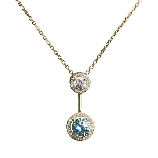 Here we bring you a delightful suite of matching items, formed of a versatile pair of back to front earrings; where you can get 2 looks in one. A classic ring with two-tone finishing for a classic, yet contemporary look and a matching pendant. All with our signature Diamondeau® - flawless simulated diamondeau stones in distinctive classic, of over 260 individual stones and 4.99ct aquamarine shades. A perfect gift.