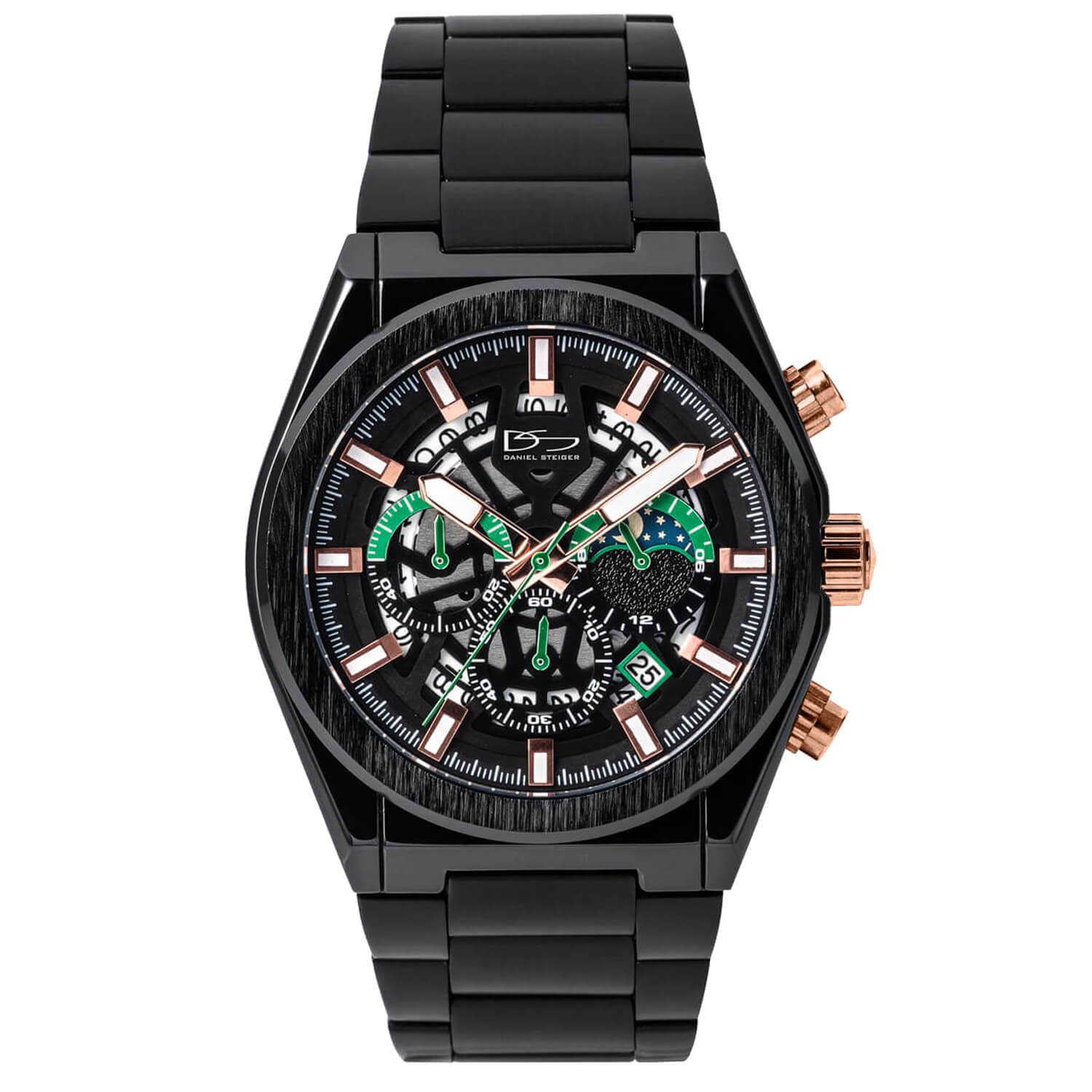 Our Challenger watch is a classic style with an updated modern look. An intricate open dial with 3 sub dials features green highlights. A textured brushed bezel and matt & polish stainless steel strap compliments this sleek design. A clean, sophisticated design and sporty touches like a touch of color make the Challenger a perfect choice for the man in your life.