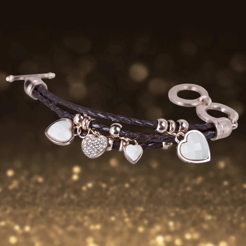 These charming bracelets are the perfect casual accessories for summer. Perfectly on trend with their combination of rose gold tones, leather and sparkle from our flawless Diamondeau® - flawless simulated diamond.