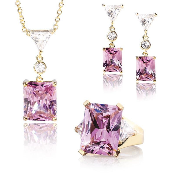 The Argyle Mine in Western Australia produces around 90% of the Worlds Pink Diamonds. These are rare and extremely expensive with even the smallest versions hitting six figure values. Colored diamonds are mothers natures most treasured and rarest finds. We bring you the same look but at a much more affordable price. We have taken an over 13.5ct pink lab-created Diamondeau® - flawless simulated diamond. and mounted it in a designer sterling silver mount, finished in gold.