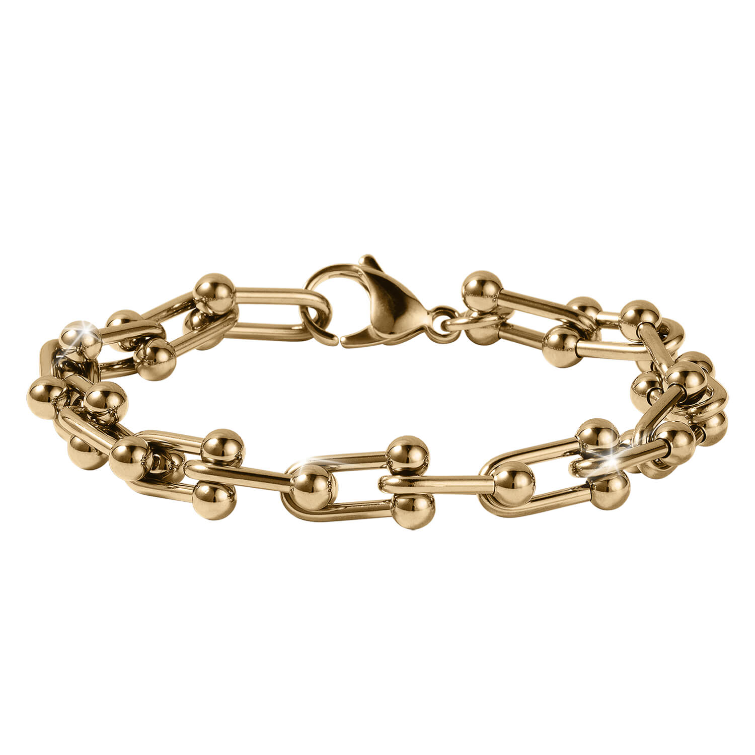 This collection is the perfect bold, yet classic design that holds a quietly commanding elegance. Crafted from premium grade stainless steel, finished in luxurious yellow gold. Fancy elongated chain links are joined together in this remarkable set. A timeless accessory that can be worn at any occasion.
