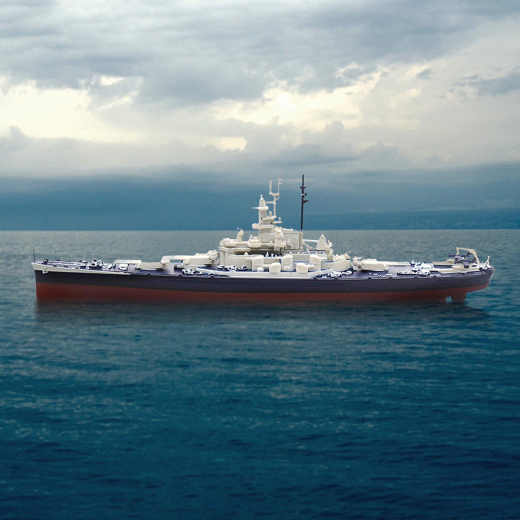 Add one of World War II’s most legendary battleships into your collection with this die-cast model of the USS Massachusetts. Famously known as “Big Mamie,” the Massachusetts was a formidable battleship that played a critical role in both the Atlantic and Pacific theaters. She participated in key operations including the North Africa invasion and the Pacific island hopping campaigns, earning 11 battle stars for her firepower, resilience, and service. Notably, Massachusetts is believed to have fired the last 16 inch shell of World War II during a bombardment of industrial targets in Japan in July 1945. A symbol of American naval strength, the Massachusetts embodies the engineering and strategic might of her era. The model features authentic superstructure and hull detailing, capturing the ship’s iconic silhouette and gun turrets. The bronze-painted propellers add a touch of realism, making it a striking display piece for collectors and history enthusiasts alike