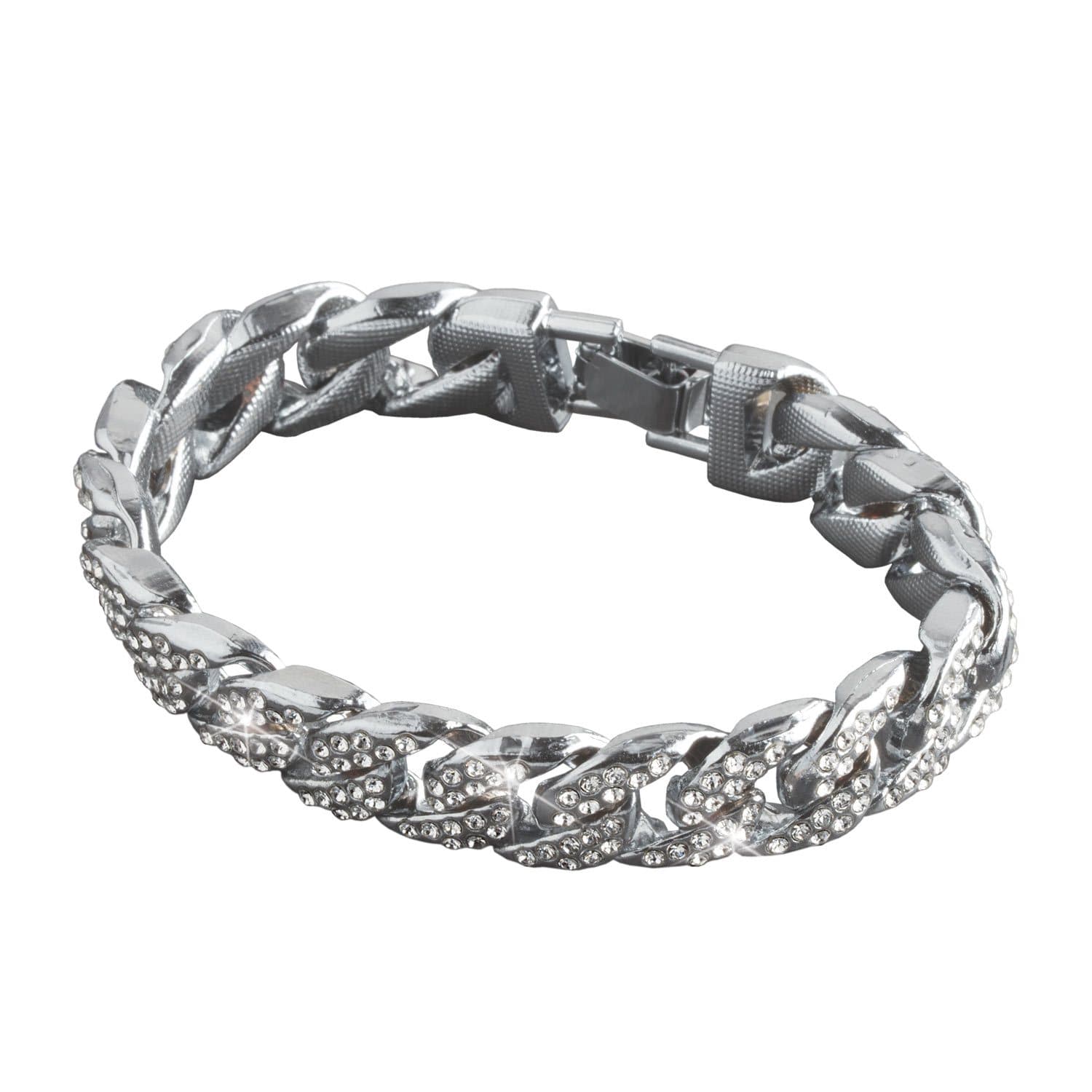 This casual, yet classic luxurious men’s curb bracelet is the perfect companion to many of our designer timepieces. Set with sparkling crystals, this bracelet is sure to make a statement.