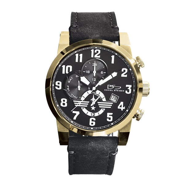 This watch is the epitome of style and function in striking black and gold. Crafted from premium-grade stainless steel, the case features an elegant yellow gold finish that perfectly complements the sleek IP black pushers, crown, and bezel. The designer dial adds a sophisticated touch, making it a true statement piece. Equipped with a precision 3-hand quartz movement, it offers day, date, and 24-hour functionality, ensuring you stay informed and punctual. Completing the look is a genuine black leather strap, adding a layer of refinement and comfort. The black and gold combination ensures this timepiece stands out in any setting.